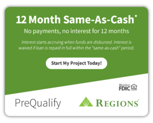 *Credit and loans provided by Regions Bank, Member FDIC, (650 S. Main St., Suite 1000, Salt Lake City, UT 84101) on approved credit, for a limited time. 19.99% fixed APR (provided however, APR will not exceed 15.99% for residents of New Jersey and 17.99% for residents of Florida and Wisconsin), effective as of December 2025, subject to change. Minimum loan amounts apply. Interest starts accruing when funds are disbursed. Interest waived if repaid in 365 days from first disbursement. When open line period ends, the balance becomes a fixed rate installment loan; repayment terms vary from 24 to 132 months. Actual loan term may be shorter if less than the full approved amount of credit is used. First monthly loan payment due 365 days after first disbursement. If no payments made during same-as-cash period and APR of 19.99%, monthly payments vary from $21.99 to $30.82 per $1,000 borrowed depending on term. The minimum monthly payment will be no less than $50.00.
